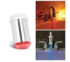A fun new way to liven up your home with color. No more testing the water to see if it is hot. With this faucet fixture a colorful stream of blue water flows and changes to red as the water heats up.