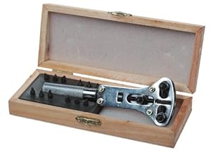 New. Wrench Screw Back Watch Opener. This is a new wrench watch case opener. It opens and closes screw back water resistant watches. Includes 12 patterned pins and grips, 4 sets in all, for a variety of case backs. This is a replacement for the Jaxa wrench. This adjustable case opener can open Bulova, Rolex, Movado, Gruen, Longines and Accutron screw type back waterproof watches. It measures approximately 5 1/2" (140 mm).